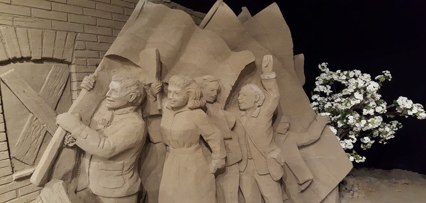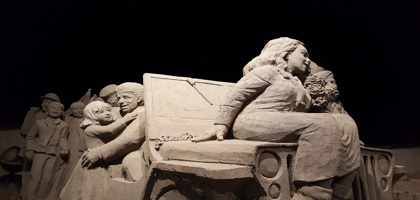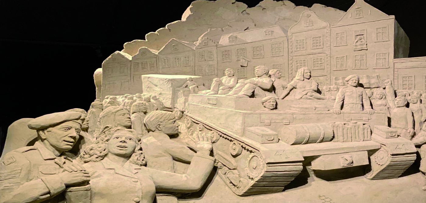 't Veluws Zandsculpturenfestijn is een jaarlijks terugkerend evenement, met ieder jaar een ander thema, dit jaar "75 jaar Bevrijding". Normaal geopend vanaf half april t/m eind oktober, maar helaas is 2020 door het Coronavirus een ander jaar en zijn wij sowieso t/m 1 juni gesloten. Houdt onze website en de maatregelen van de overheid hiervoor in de gaten.